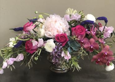 An ultachic take on a spring mix. Featuring peonies, roses, veronica, sweet peas, ranunculus and orchids.